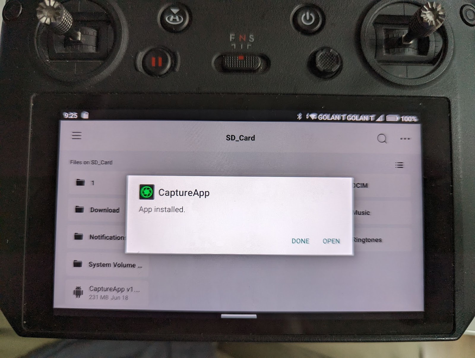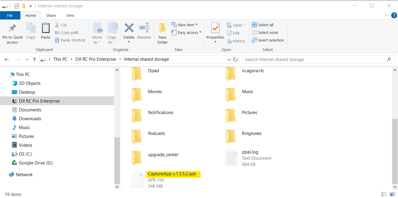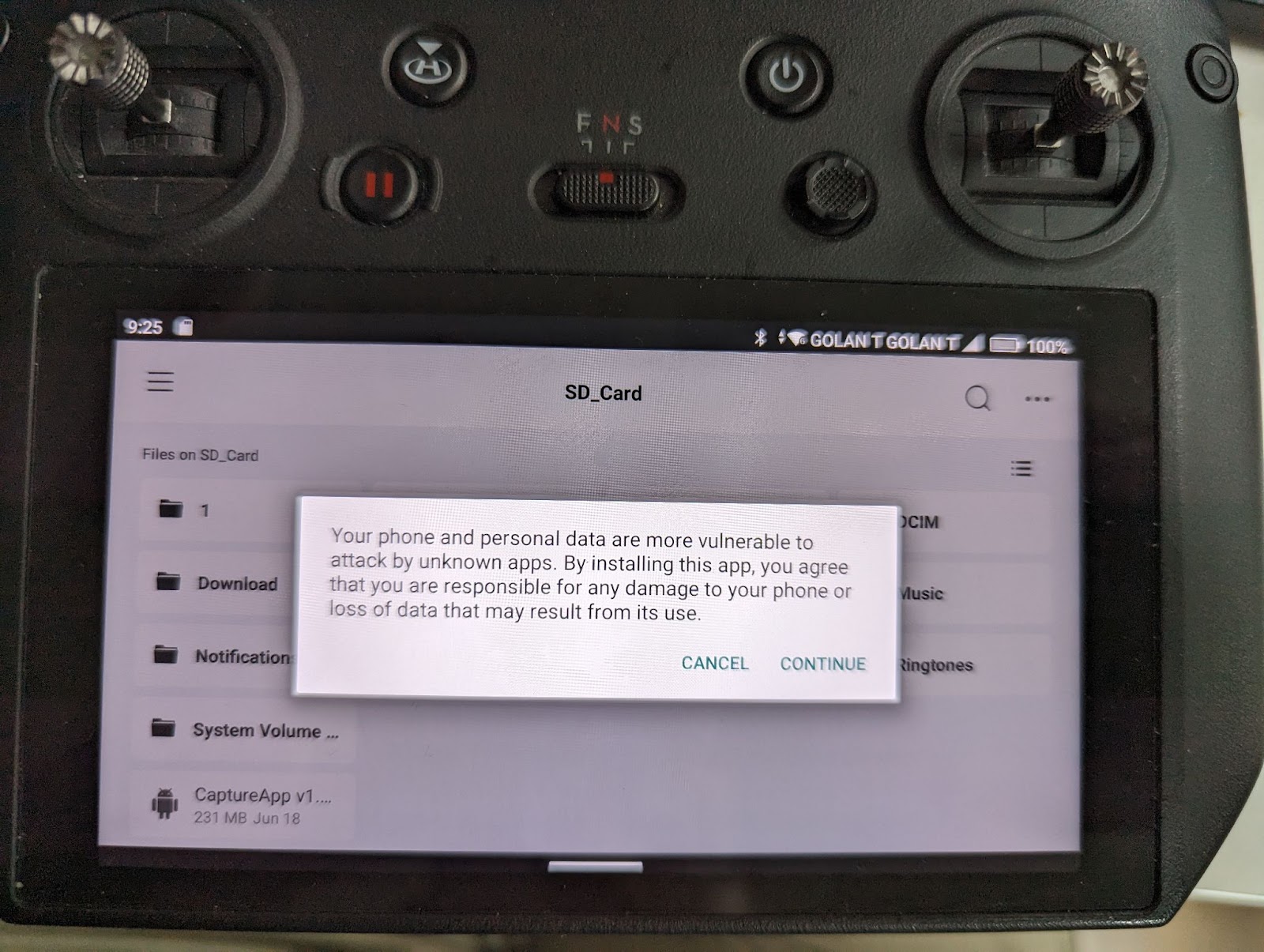 - Download the .apk file from this folder and place it in the internal storage folder on the drone.