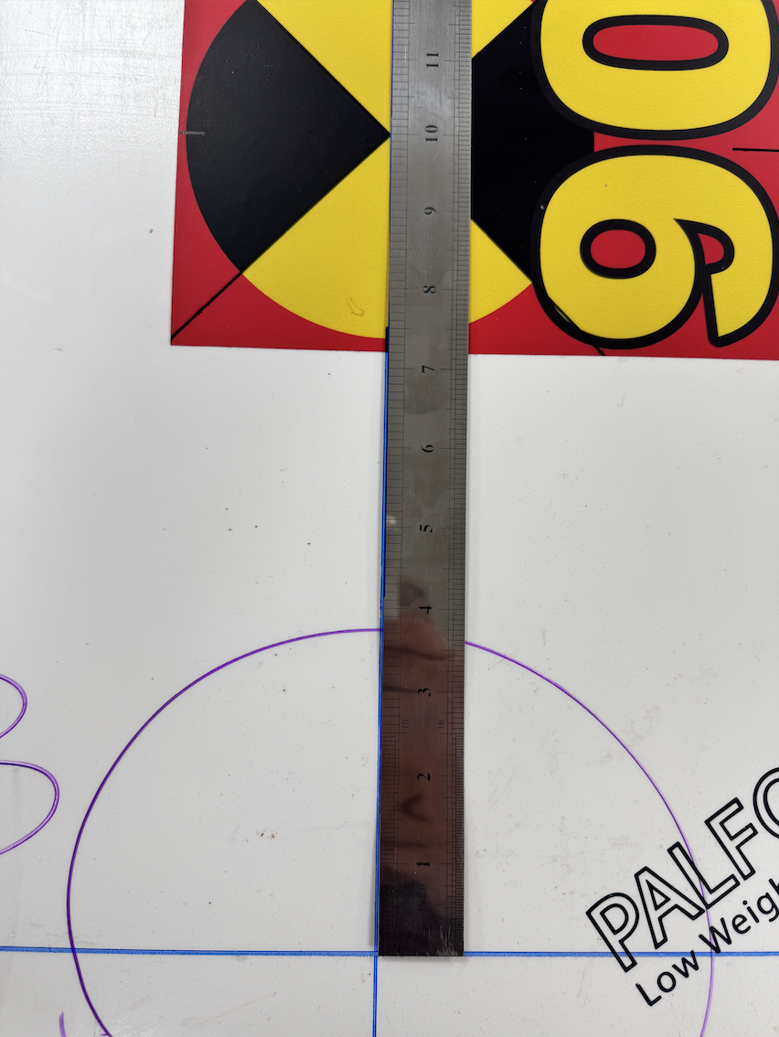 - Write the measured offset distance on the deck AND on the sticker.