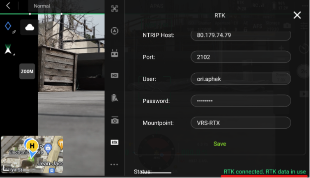 - Verify that the NTRIP credentials are indicated in green (successful connection)
