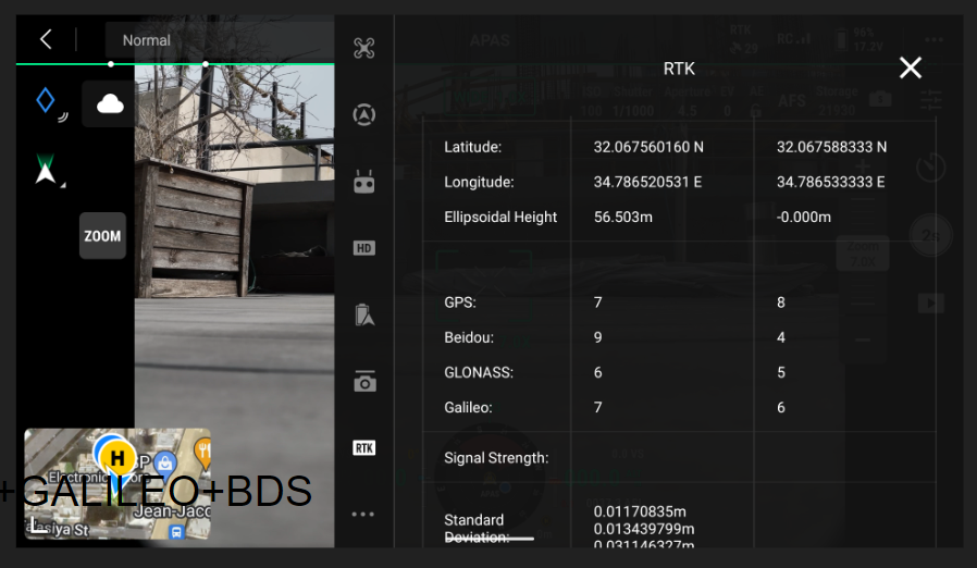 Tip: When attempting to achieve an RTK lock, keep the pod away from the core or other tall vertical elements as these can block the RTK signal.