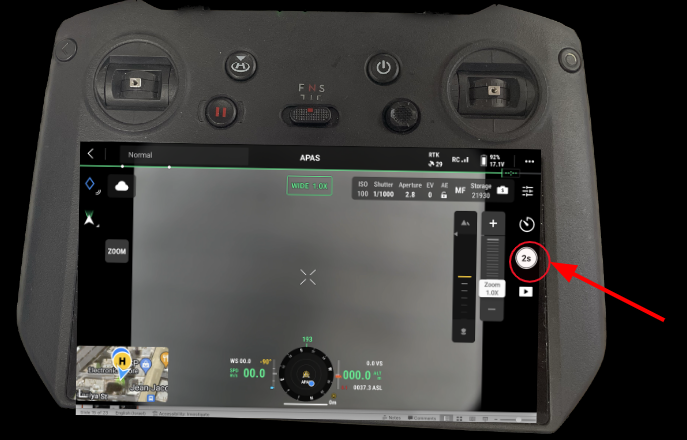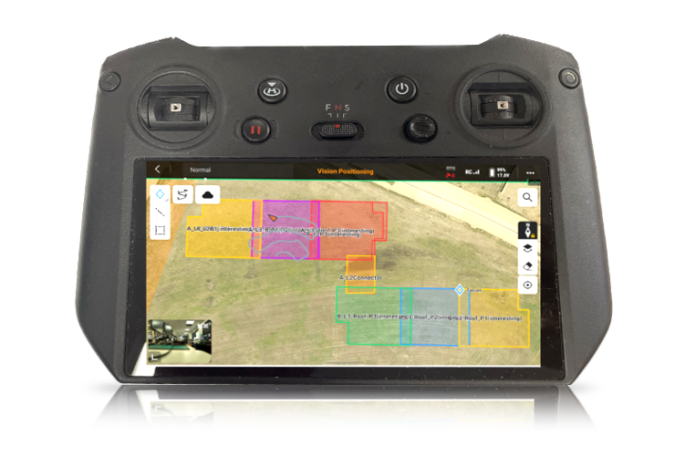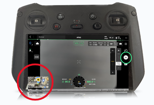 This can be monitored on the drone remote during the scan by clicking on the “map view” in the bottom left corner of the screen.