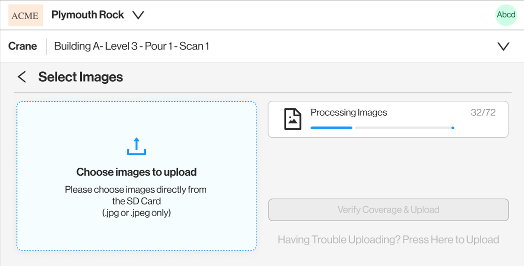 After the images have finished processing, proceed to "Verify Coverage & Upload".