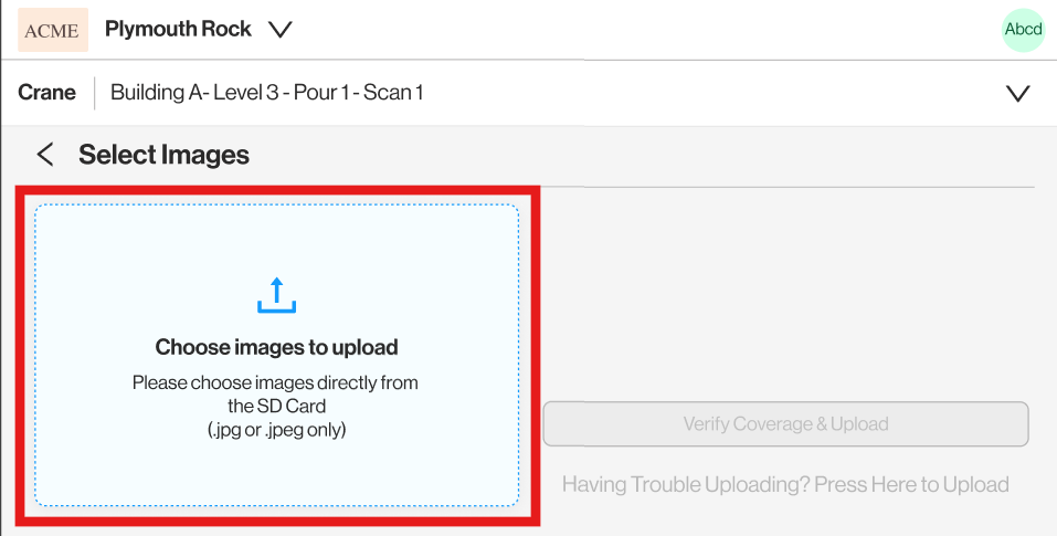 Click on "Choose Images to Upload" to select the images you want to upload from the SD Card.
