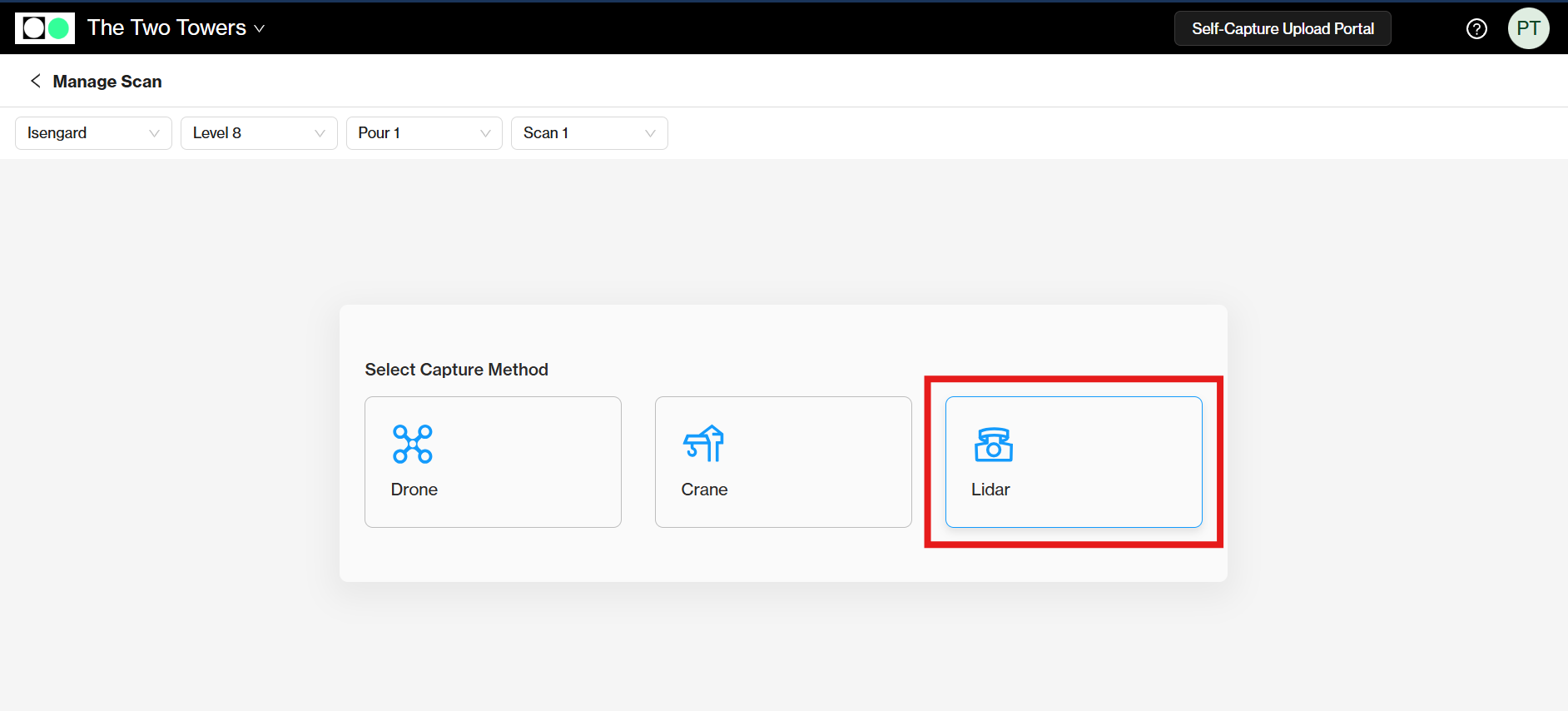 The first time that data is uploaded for a building, the user may be asked to select the capture method.