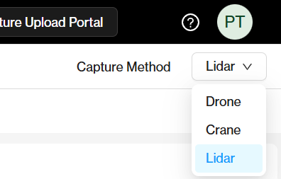 If your project changes capture methods mid-project, the capture method can be changed from the dropdown underneath your avatar:
