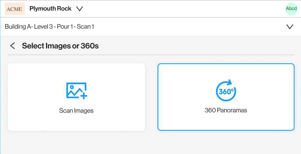 Note: It is currently only possible to upload 360s to a scan. Support for documentation 360s will be coming in a future release
