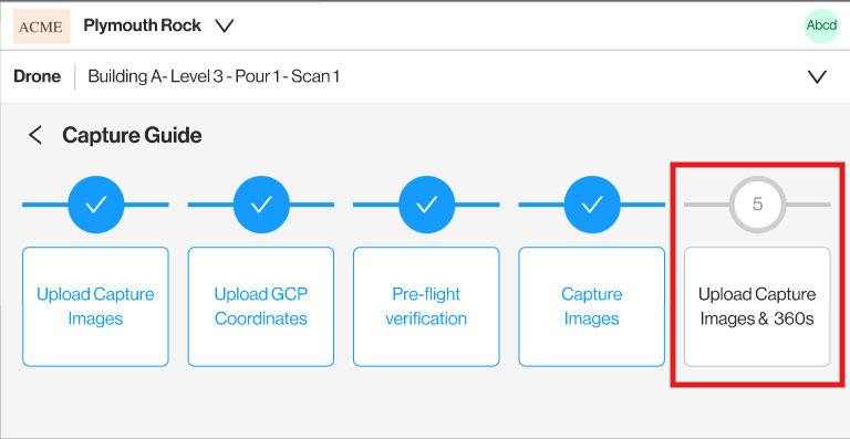 - From the Capture Guide, choose step 5: Upload Capture Images & 360s