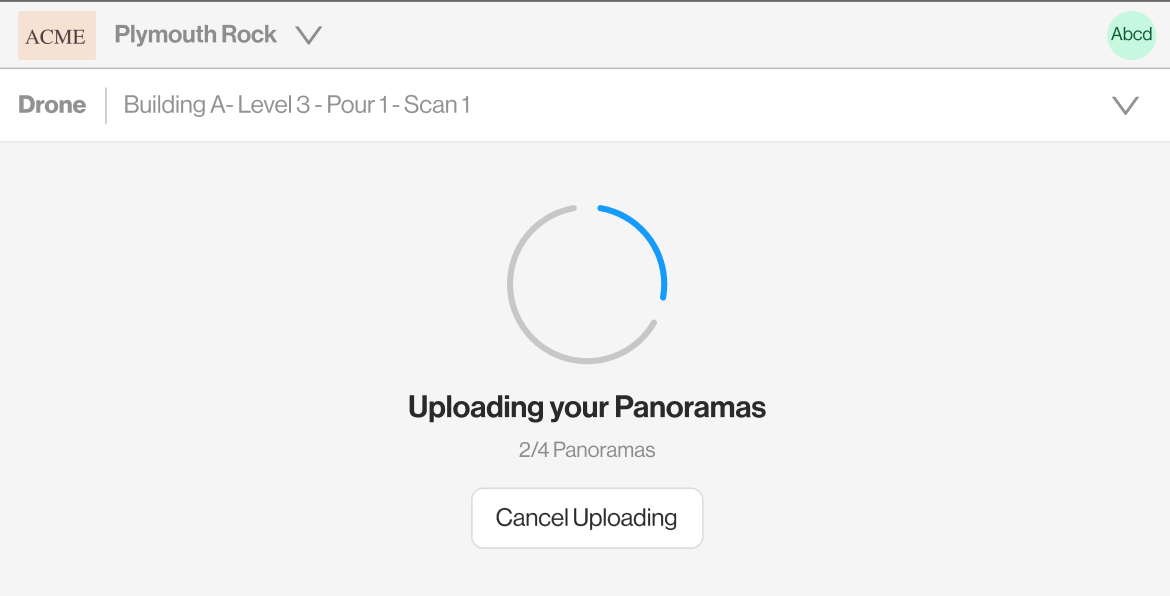 Clicking Cancel Uploading will stop the upload process. Any panoramas that have completed uploading will be saved.
