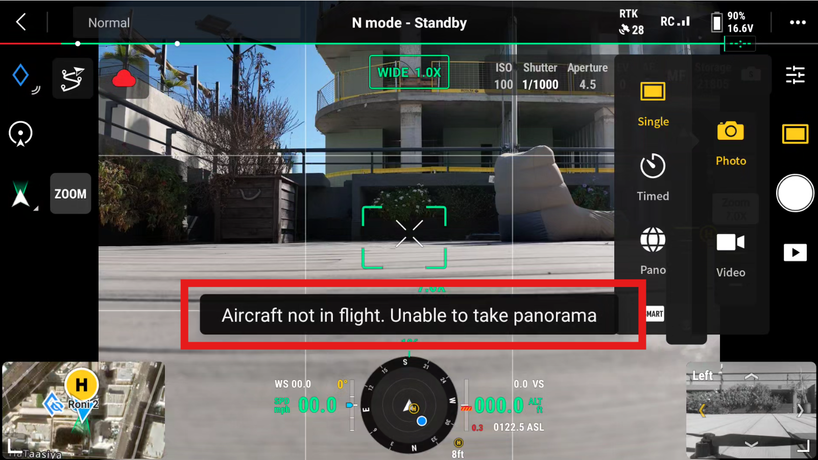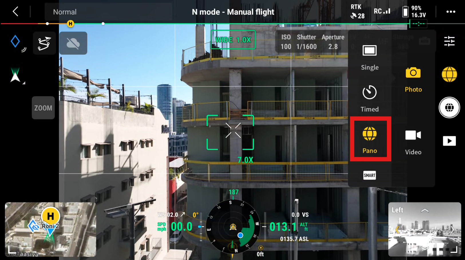 Note: The drone cannot switch into panorama mode unless it is in flight.