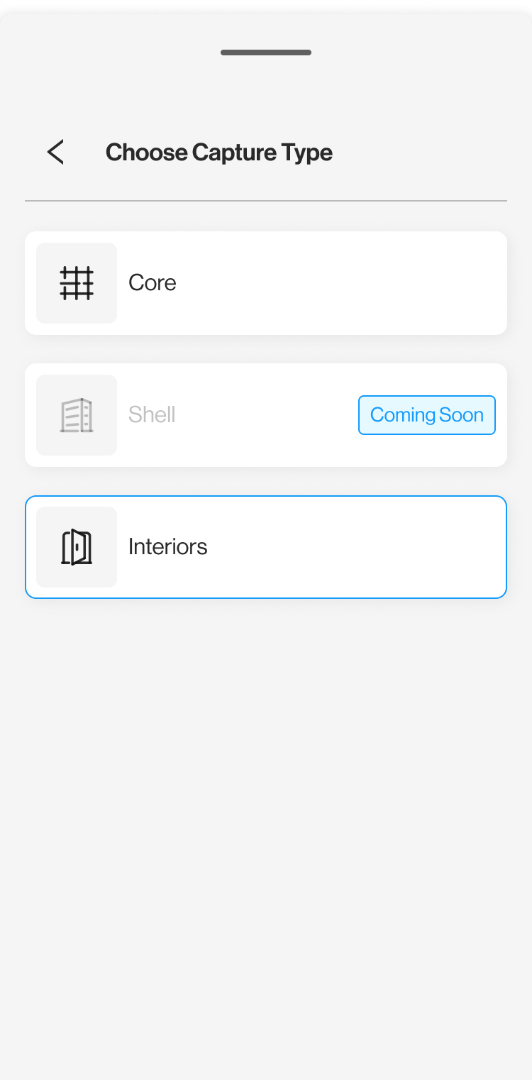 Log in to the CaptureApp using your Siteaware credentials. Select your project and then the interiors capture type. |