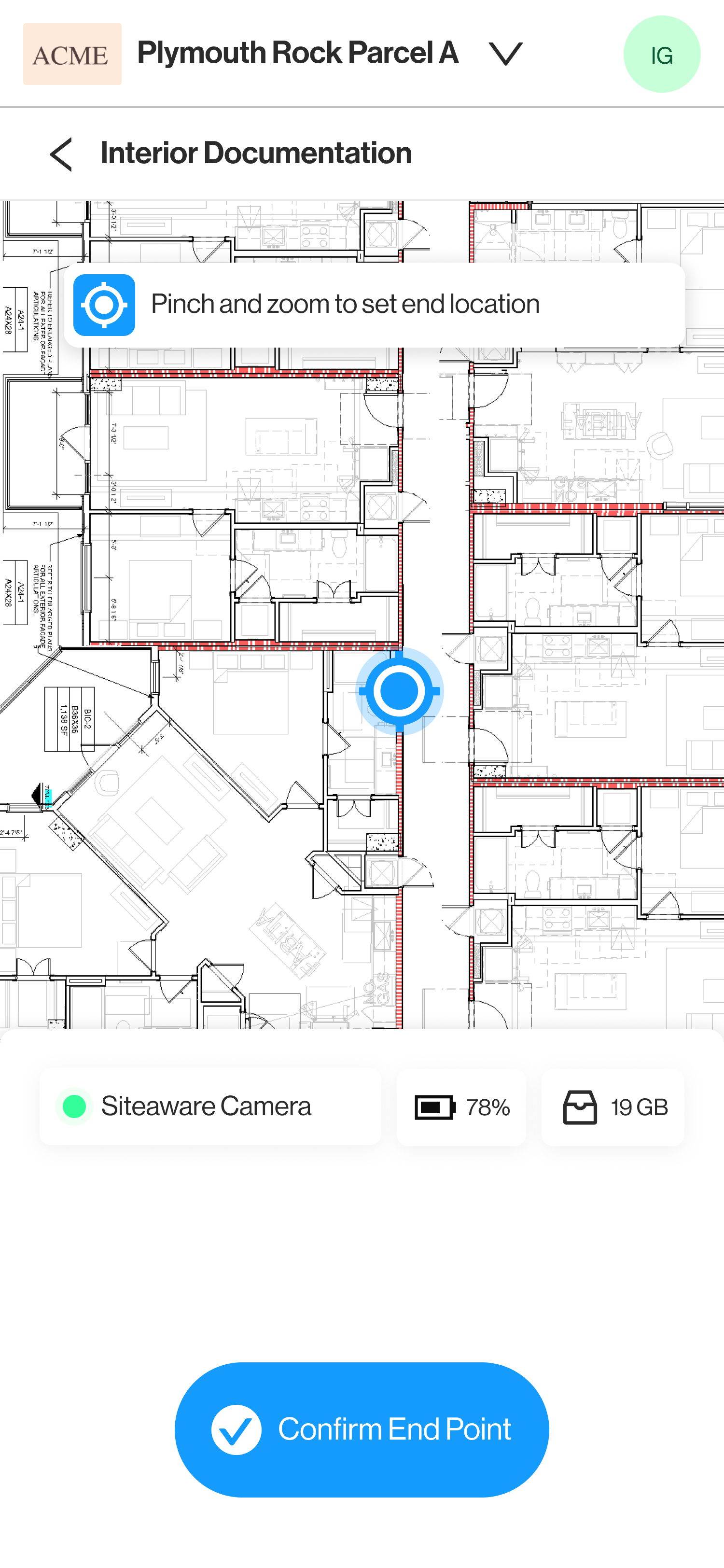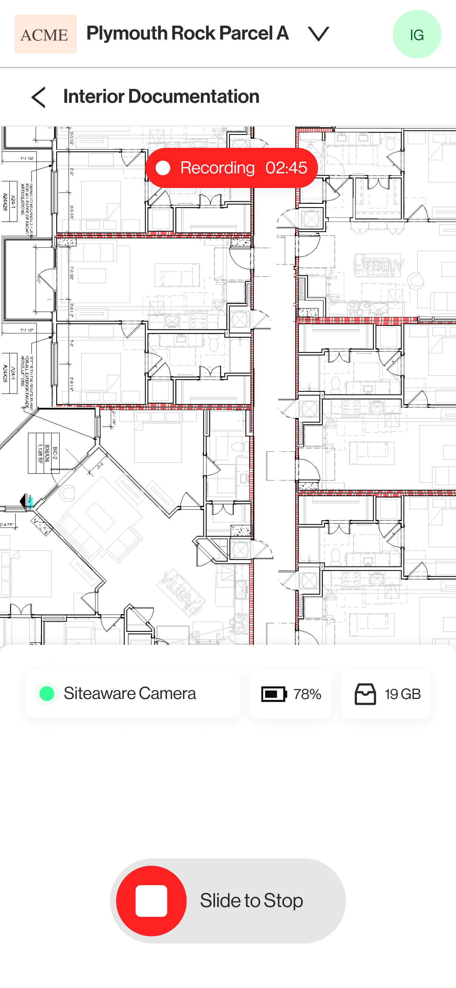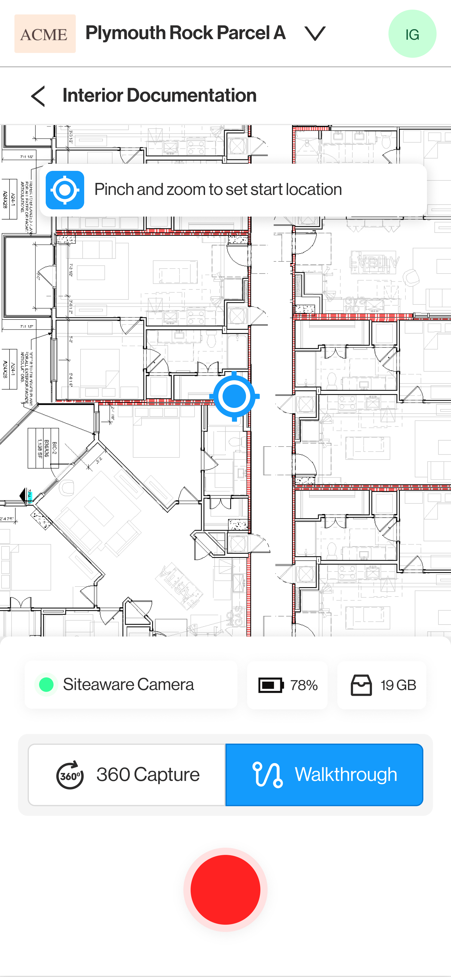Once the plan is received, Siteaware will open the level for scanning.