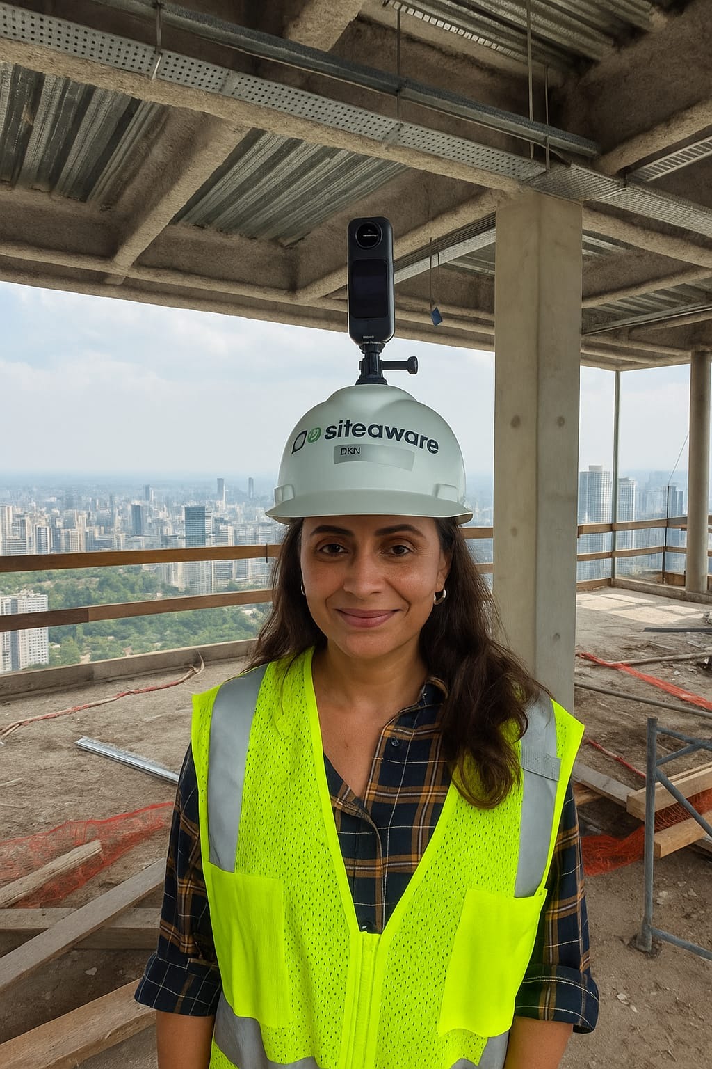 Before your first capture, attach the camera to your hard hat using a camera mount. The camera should be mounted vertically as shown below: