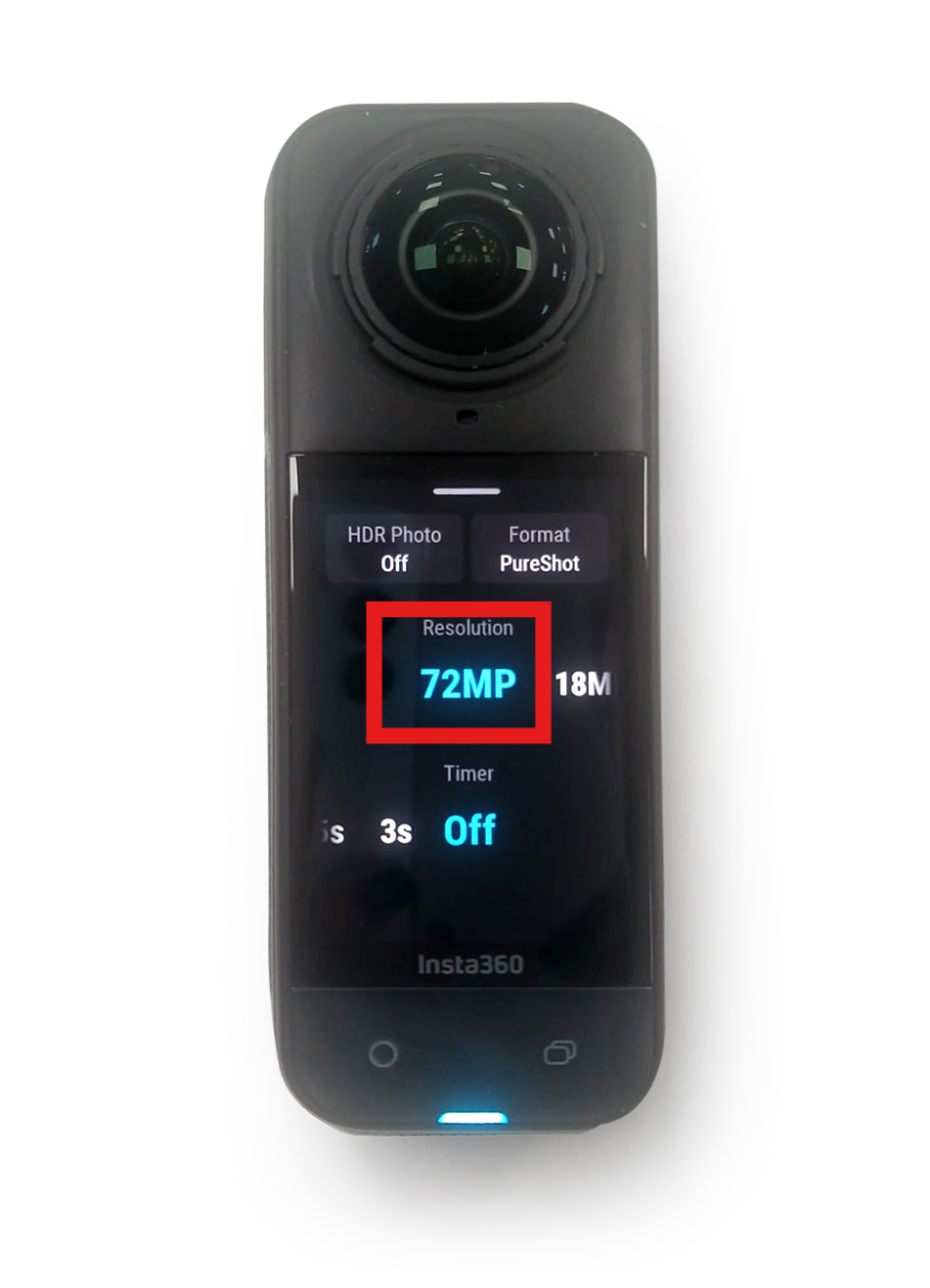 | Photo Resolution = 8K (72MP) | On the main screen when in Camera Mode, click on the MP at the bottom of the screen to adjust the image resolution